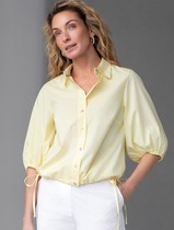 Укороченная блузка с рукавами буфами и с кулиской по низу из эластичного хлопка