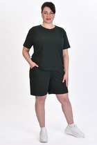 Костюм молодёжный с принтом-имитацией вышивки с изображением символа 2021 года. Футболка слегка приталенная, спущенная пройма, круглая горловина. Бриджи на притачном поясе, с удобными карманами и эластичными манжетами внизу. Горловина, спущенная пройма, вход в карманы обработаны эластичной рибаной с лайкрой. Костюм домашний, удобный, из натурального хлопка, приятный к телу.