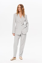Костюм женский с брюками. Толстовка свободной формы со спущенными плечами и длинными рукавами. На груди принт в виде надписи. Низ притачной, двухцветный, нижняя часть чуть длиннее, верхняя с надрезами. Брюки полуприлегающего силуэта с карманами. Низ на манжетах, пояс на резинке.