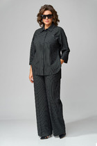 Комплект состоит из футболки и бриджей. Бриджи на резинке, средней длины, с карманами. Футболка прямого силуэта, длиной до середины бедра. Рукав цельнокроеный короткий, со вставками из кружева вдоль плечевого шва. На полочке и спинке расположены симметричные кокетки из отделочного полотна. Горловина обработана обтачкой из основного полотна. Карманы на бриджах и проймы обработаны бейкой из основного полотна.