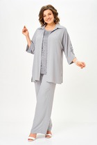Костюм состоит из толстовки и брюк. Брюки на поясе, с карманами, с лампасами из отделочного полотна вдоль боковых швов, на резинке по низу. Толстовка прямая, свободная, с ушками на капюшоне, на поясе, длиной до середины бедра. Рукав длинный. На полочке обработан карман "кенгуру".