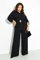 Костюм состоит из толстовки и брюк. Брюки на поясе, с боковыми карманами, с лампасами из отделочного полотна по боковым швам, на эластичном манжете. Толстовка прямая, на молнии, с капюшоном, с карманами "кенгуру", длиной до середины бедра. В нижней части боковых швов обработаны разрезы-шлицы, украшенные декоративной тесьмой. Рукав длинный, с лампасами из отделочного полотна вдоль рукава, на эластичном манжете.