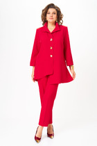Жакет свободного силуэта с застежкой по переду на кнопки. Воротник отложной. По переду отрезные кокетки, накладные карманы с клапанами. По спинке кокетка и рельефы. Рукав двухшовный с притачной манжетой на кнопках. Низ жакета на притачном поясе.