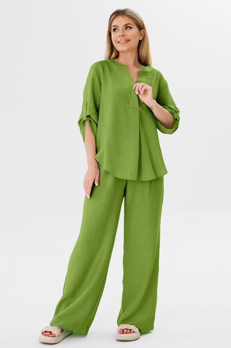 Брюки палаццо свободного кроя с притачным поясом на резинеке. В боковых швах карманы.
