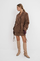 Жакет женский прямого силуэта, с декоративным воротником и ассиметричным низом. Рукав 3/4. Застежка пояс с пряжкой.