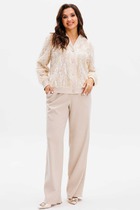 Элегантные женские брюки прямого кроя ,по переду на брючинах стрелки. Модель с высокой посадкой на притачном поясе обеспечивает идеальное прилегание. Спереди расположена практичная застежка на тесьму-молнию, добавляющая удобства при носке. Брюки укомплектованы функциональными боковыми карманами, что придает модели дополнительную практичность и удобство. Эта модель идеально подойдет как для офиса, так и для создания повседневных стильных образов.