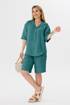 Брюки прямого силуэта, слегка расклешённые к низу. В боковых швах обработан карман с отрезным бочком, верхний срез обработан притачным поясом с эластичной тесьмой что обеспечит идеальную посадку по фигуре. Костюм дополнен съёмным поясом из основной ткани