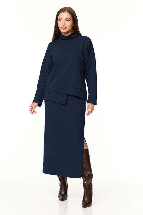 Шикарный трикотажный женский комплект от бренда Anastasia, идеальный для любого случая. Этот костюм сочетает в себе элегантность и комфорт, что делает его подходящим как для деловых встреч или домашней одежды, так и для праздничных мероприятий. Комплект состоит из офисной кофты оверсайз, который придаёт ей особую привлекательность. Нежный и теплый материал делает его отличным выбором для осенне-зимнего периода, при этом он легкий, поэтому его можно носить и весной. Джемпер прямого силуэта со спущенным плечом, низ по полочке фигурный, асимметричный и подрез в виде запаха. По низу спинки и полочки идет отрезной пояс. Юбка макси зауженная к низу, по бокам разрезы, пояс отрезной на резинке.  Нарядный костюм отлично подойдет для долгих прогулок или для работы, для офиса. Юбка - макси создает чувственный образ благодаря своей длине, придающей женственность и элегантность вашему образу. Это не только универсальная одежда для деловых встреч или прогулок, но и идеальный выбор для различных торжественных мероприятий, подойдет как для взрослых женщин, так и для подростков. Отдельный части костюма легко будут сочетаться с вещами из Вашего гардероба. Модель можно отнести к стилю спортивный кэжуал, оверсайз, спортивный шик. Костюм можно носить с кроссовками, высокими сапогами или ботинками. Обязательно добавьте наш бренд в избранное и следите за новинками, распродажами, скидками и акциями! Хороших покупок от «Анастасия». Длина блузы (по спинке):(50-54)- 61см, (56-60)-63 см. Длина рукава: (50-60)-45см. Длина юбки: (50-60):-90см.