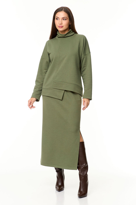 Шикарный трикотажный женский комплект от бренда Anastasia, идеальный для любого случая. Этот костюм сочетает в себе элегантность и комфорт, что делает его подходящим как для деловых встреч или домашней одежды, так и для праздничных мероприятий. Комплект состоит из офисной кофты оверсайз, который придаёт ей особую привлекательность. Нежный и теплый материал делает его отличным выбором для осенне-зимнего периода, при этом он легкий, поэтому его можно носить и весной. Джемпер прямого силуэта со спущенным плечом, низ по полочке фигурный, асимметричный и подрез в виде запаха. По низу спинки и полочки идет отрезной пояс. Юбка макси зауженная к низу, по бокам разрезы, пояс отрезной на резинке. Нарядный костюм отлично подойдет для долгих прогулок или для работы, для офиса. Юбка - макси создает чувственный образ благодаря своей длине, придающей женственность и элегантность вашему образу. Это не только универсальная одежда для деловых встреч или прогулок, но и идеальный выбор для различных торжественных мероприятий, подойдет как для взрослых женщин, так и для подростков. Отдельный части костюма легко будут сочетаться с вещами из Вашего гардероба. Модель можно отнести к стилю спортивный кэжуал, оверсайз, спортивный шик. Костюм можно носить с кроссовками, высокими сапогами или ботинками. Обязательно добавьте наш бренд в избранное и следите за новинками, распродажами, скидками и акциями! Хороших покупок от «Анастасия». Длина блузы (по спинке):(50-54)- 61см, (56-60)-63 см. Длина рукава: (50-60)-45см. Длина юбки: (50-60):-90см.