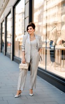 Женский брючный костюм — это идеальное сочетание стиля, комфорта и универсальности, которое станет вашим верным спутником как на деловых встречах, так и на торжественных мероприятиях. Изготовленный из высококачественной поливискозной ткани, этот костюм обеспечивает легкость и приятные ощущения при носке, а его элегантный пиджак и классические брюки подчеркивают вашу женственность и утонченность. Костюм женский 2-х предметный: жакет и брюки. Жакет полуприлегающего силуэта: бочок с выточкой по полочеке, по спинке средний шов. Застежка двухбортная, карман клапан "обманка". Рукав двухшовный. Брюки прямые. По полочке карман и складки. Пояс на резинке. Строгий и модный фасон делает его актуальным в любой ситуации, будь то офис, свадьба или прадничный выход. Длина жакета: 73см . Длина рукава: 62см. Длина брюк: 100 см.