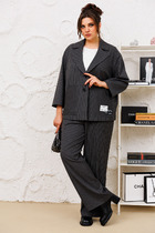 Бренд белорусской женской одежды больших размеров Anastasia представляет комплект двойку. Комплект женский 2-х предметный (блузка, брюки) станет отличным дополнением к Вашему гардеробу. Подойдет для повседневной носки (работа, офис, прогулки) и на праздничный выход. Достаточно дополнить его соответствующими аксессуарами. Блузка прямого силуэта со спущенным плечом. Благодаря покрою оверсайз - станет базовой вещью в вашем гардеробе. Легко сочитается с любыми брюками, юбками , платьями и джинсами. Позволит создать большое количество образов для офиса, прогулок, праздничных мероприятий. По спинке идет кокетка со складками, по боковому шву-складка. Рукав на завязывающейся манжете со сборкой. В верхней части рукова- встречная складка. Воротник на отрезной стойке. Застежка на петли и пуговицы. Низ фигурный, спинка длинее. Брюки прямые со стрелками. Пояс на резинке, по бокам карманы. Благодаря своему крою и фасону костюм подчеркивает женственные формы и скрывает то, что должно быть незаметным. Это повседневный вариант на каждый день для занятий в школе или для офиса, на работу или на прогулку. Наденьте его на деловую встречу, официальное мероприятие, школьное торжество. Модель подойдёт для образа в университет или колледж. Этот предмет одежды подчеркнет вашу элегантность и сделает образ более женственным. Одежда для женщин больших размеров и не только, по отличным ценам и высокого качества - это Anastasia! Добавляете нас в любимые бренды и вы всегда будете в курсе всех акций и новинок! Новинка осень 2024! Хороших покупок от «Анастасия». Длина спинки: (50-52)-81см., (54-58)-85см. Длина рувака с манжетой: (50-52)-43см., (54-58)-44см. Длина брюк (50-54) -101см, (56-58)-104см.