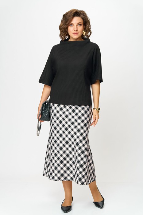 Представляем вашему вниманию стильный и уютный комплект, который станет настоящим маст-хэвом в вашем гардеробе. Классический дизайн в стиле олд мани создает атмосферу расслабленности и уюта, что особенно приятно в прохладные осенние и зимние дни. Этот комплект станет вашим верным спутником в любой ситуации, добавляя нотки элегантности и шарма в вашу повседневную жизнь. Отражает роскошь, придает элегантность и изысканность, будет великолепно смотреться на любой фигуре и привлечет к вам внимание окружающих. Комплект женский 2-х предметный (блузка, юбка).Блузка женская ,прямого силуэта, из трикотажного полотна лапша, со спущенным плечом. Рукав "летучая мышь", 3/4 длины. Горловина цельнокроенная в виде стойки. Юбка по косой. Пояс на резинке. Отдельные части крмлекта будут легко сочитаться с вещеми из вашего гардероба. Длина блузки(по спинке): (50-60)-65 см. Длина рукава от головины: (50-60) -50 см. Длина юбки - 90см.