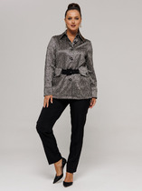 Жилет полуприлегающего  силуэта, выполнен из жаккардовой купонной ткани.  Полочка жилета с вертикальными рельефами и прорезным карманом с листочкой. Горловина V-образной формы.   Спинка со средним швом и вертикальными рельефами.