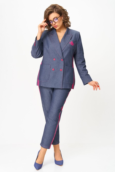 Костюм женский джинсовый двухпредметный, состоит из брюк и жакета.