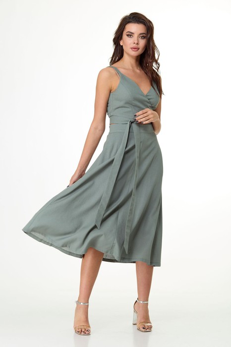 Комплект состоит: юбка, топ с запахом. Выполнен из льняной ткани.