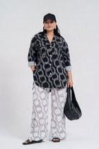 Погрузитесь в мир элегантности и стиля с нашим потрясающим костюмом-двойкой, который станет вашим незаменимым союзником в любых ситуациях. Жакет однобортного кроя с изысканной подкладкой, украшенный уникальным принтом, привносит нотку оригинальности в классический силуэт. Функциональные карманы с клапаном добавляют практичности, а отделка бахромой по всему костюму подчеркивает внимание к деталям и создает эффектный акцент.
