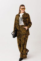 Пижамный комплект для уверенных в себе женщин, которые смело могут пойти в нем, как на работу, так и на свидание или прогулку. Жакет прямого силуэта, со спущенной линией плеча, рукав расширен по низу и укорочен, для вашего удобства. По переду накладные карманы, классический воротник с лацканом. Застежка на петлю пуговицу. Съёмный пояс декорирован. Брюки прямые расширенные к низу. Пояс на резинке, поэтому брюки будут на вас сидеть хорошо, вне зависимости от того, похудели ли вы или немного выросли в объемах.