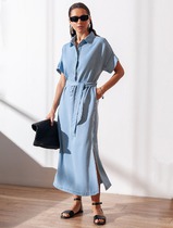 Длинное платье-рубашка с поясом и разрезами из джинсового лиоцелла