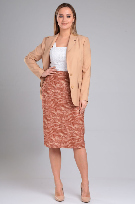 Элегантный женский комплект состоит из классических жакета и юбки-карандаш.  Отлично подойдет к деловому образу для офиса, учебы и работы.