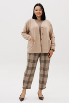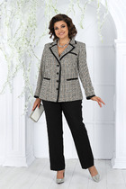 Комфортный комплект состоящий из рубашки и брюк выполнен из трикотажного полотна. Характеристики: рубашка прямого свободного кроя, воротник классический - отложной, застежка центральная на петли пуговички, по переду крупные карманы, рукав втачной короткий, в боковых швах разрезы спинка цельнокроеная. Длина рубашки по спинке 75 , длина рукава 27 см. Брюки - прилегающий силуэт, брюки без пояса - на подгибе, подгиб в области талии на резинке. Длина 114 см.