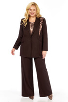 Комплект с шортами выполднен из трикотажного полотна серого цвета. Джемпер прямого широкого кроя, V-образный срез горловины, застежка центральная на петли пуговички, рукав втачной слегка спущен, по низу нашито декоративное кружево. Длина изделия по спинке 56 см, длина рукава от горловины 75 см. Шорты свободного кроя. Пояс на резинке. По передней части имитация застежки на 3 пуговицы. По низу нашито декоративное кружево. Длина 36 см.