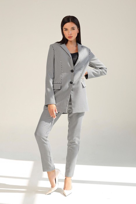 Комплект двойка черно-белая клетка(жакет+прямые брюки)