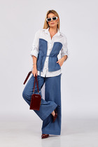 Комплект женский брючный состоящий из блузы и брюк из разных видов ткани.