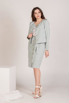 Комплнект женский, состоящий из жакета и брюк. Жакет прилегающего силуэта с вертикальными рельефами от проймы по переду и спинке, с отложным воротником, с застёжкой спереди на петли и пуговицы, рукав вточной 2-х шовный со шлицей, по переду карманы с клапаном. Изделие на подкладке. Брюки прямые, зауженные к низу, на поясе-кокетке с застёжкой спереди на молнию и пуговицу, с боковыми карманами, со стрелками и шлёвками.