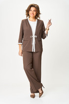 Комплект женский, состоящий из жакета и брюк-капри. Жакет прилегающего силуэта с застёжкой спереди на петли и пуговицы, с воротником отложным с лацканами, с карманами по переду, с втачным рукавом. Изделие на подкладке. Капри длиной за калено, узкие на поясе, с застёжкой спереди на молнию и пуговицы, с карманами, с разрезиками по низу боковых швов.