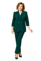 Жакет прямого силуэта с центральной застёжкой на петли и декоративные пуговицы и контрастными отделочными деталями: планки,обтачки горловины,подборта, манжеты,нижние клапаны.Перед с нагрудными вытачками из пройм,накладными карманами с двойными клапанами и декоративными пуговицами.Спинка цельная.Рукава втачные одношовные длинные.Жакет без подкладки.