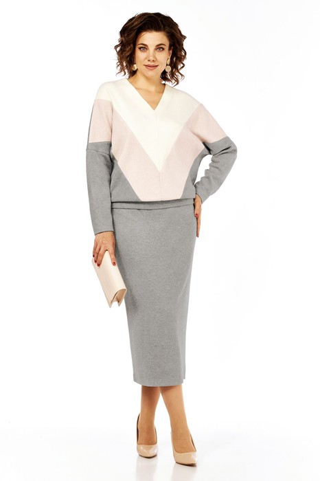 Костюм женский двухпредметный состоит из свободного джемпера и длиной юбки,выполнен из трикотажного полотна под вельвет в мелкий рубчик 3 цветов.