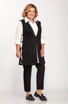В комплекте юбка-карандаш зауженная к низу, длиной за колено. Модель с пикантным разрезом по переду и карманами с отрезным бочком. Застежка на металлическую молнию с обработанным гульфиком. Пояс притачной, в боковых участках вставлена резинка,со шлевками. Спинка со средним швом,кокеткой и накладными карманами.