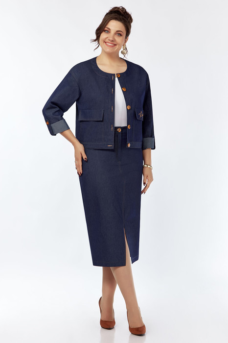 Стильный женский костюм из джинса с содержанием эластана, состоящий из зауженной юбки и свободного жакета!