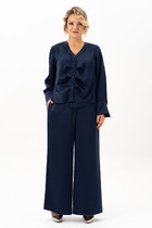 Брючный комплект в комбинации сияющего роскошного атласа с эксклюзивным ворсовым шифоном не останется незаметным!