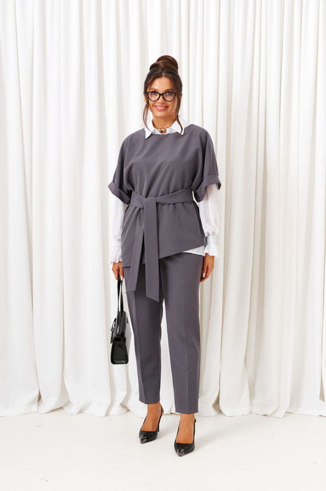 Деловой комплект 3-ка, состоящий из трех предметов: блузки, брюк и жилета.