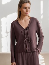 Укороченная свободная блузка с завязками и с V-вырезом изо льна с вискозой