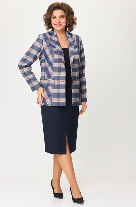 Костюм БелЭльСтиль 412/597 бело-синяя клетка + синий однотон