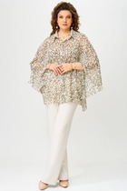 Комплект женский трехпредметный, состоит из кардигана, блузона и кюлот. Кардиган без застежки, рукав втачной 3/4 с притачным довязом. Длина кардигана 83 см. Блузон двухслойный без рукава на широких брителях. Кюлоты на резинке с карманами в боковых швах и на подкладке. Длина кюлот 100см.