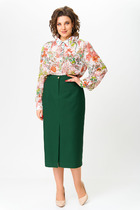 Костюм женский трикотажный, двухпредметный. Состоит из кардигана и юбки. Кардиган на подкладке с функциональными карманами по переду, застежка молния, по низу изделия кулиска со шнурком, капюшон украшен боа. Юбка полуприлегающего силуэта на трикотажной подкладке, пояс на резинке, в боковом шве разрез.