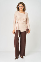 Костюм женский 2-УХ предметный. Платье и блузка. Платье длинное на брителях. Блузка с центральнобортовой застежкой на петли и пуговици, рукав втачной с манжетом. Перед украшен цветами.