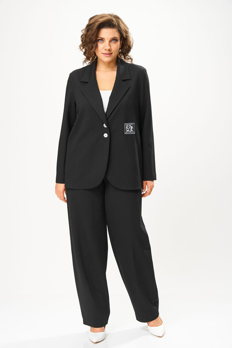 Жакет свободного силуэта, с центральной застежкой на петли пуговицы, воротник пиджачного типа с отложным лацканом. На уровне бедер накладные карманы. Рукава втачные, длинные.