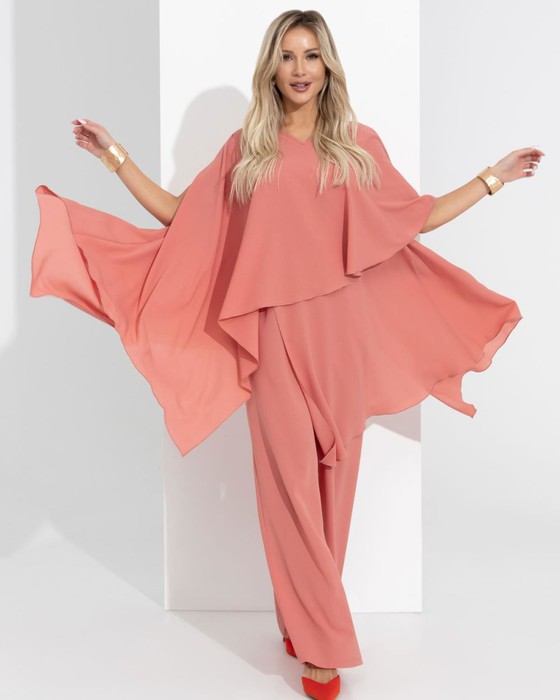 Звезда Дубая! Для красивой жизни: чувственный струящийся сет. Порази всех восточными колоритом. Упоительный коралловый подчеркнёт загорелую кожу. Отправиться в песчаное сафари и выйти победительницей!