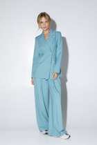 Костюм женский с юбкой из трикотажного полотна с блеском. Юбка длиной за колено, зауженная к низу. Заднее полотнище сверху на резинке. Кофта с горловина округлой формы. Рукав цельнокроенный с плечом. По низу на манжетах и завязках.