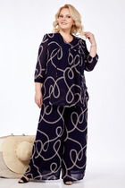 Комплект женский, состоит из платья и жакета. Жакет укроченный свободного кроя с застежкой на 1 петлю и пуговицу. Воротник пиджачного типа с лацканом. Рукав цельнокройный длиной 3/4. Платье полуприлегающего силуэта, чуть расклешенное к низу. Перед с косым подрезом и мягкими складками в области талии. Горловина в виде "качели". Пройма соспущенной линией плеча. Спинка со средним швом и потайной молнией до подреза. В области талии косой подрез.