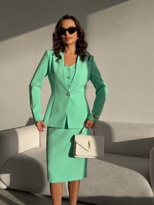 Костюм женский двух-предметный, состоящий из платья и жакета.
