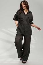 Костюм женский в спортивном стиле из трикотажного полотна. Джемпер укороченный.Рукав одношовный на манжете. Горловина обработана бейкой. Низ джемпера подшит на плоскошовной машине с эластичной тесьмой внутри. По передним половинкам застрочен защип, имитирующий кант. На боковых швах в области колена настрочены накладные карманы "портфель" и закрыты клапаном. По низу брюк из защипа выходит пата, и через шлевку, настроченную на задней половинке застегивается на кнопку .Пояс стачной с эластичной тесьмой внутри. В шов стачивания пояса вставлены полупояса, которые застегиваются на пряжку.