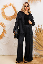 Брюки – из набивного полотна длинные, прямые, с эластичной тесьмой по линии талии.