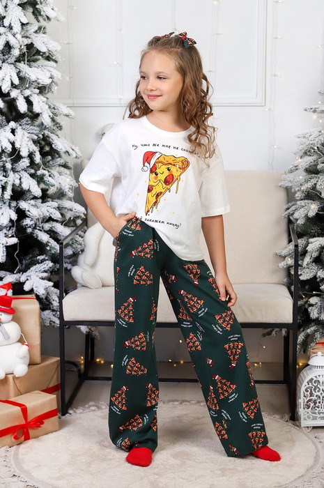 Костюм для девочки. Футболка оверсайз, с принтом. Брюки выполнены из полотна эксклюзивного дизайна; расширенные к низу, с боковыми карманами, на притачном поясе с отстроченной эластичной тесьмой.
