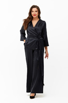 Настоящее произведение искусства!!! Уверенность, элегантность, этого костюма делает его идеальным выбором для важных деловых встреч, корпоративных мероприятий и незабываемых вечерних выходов. Изысканный комплект тройка выполнен из качественной стрейчевой ткани. Топ облегающего силуэта с рельефами по полочке, по спинке выточки и потайная молния в среднем шве. Брюки клёш от колена с за утюженым кантом, которые подчеркнут вашу утонченность и изысканность. Застежка молния по переду, по бокам прорезные карманы, пояс со шлевками и эластичной лентой по бокам. Жакет "BLAZER" без застежки на подкладке, рукав втачной расширенный к низу с декоративной шлицей. Изящность комплекту придает контрастная отделка воротника, планок, разреза шлицы и съемного декоративного цветка ручной работы подчеркнет вашу неотразимость и безупречный вкус.