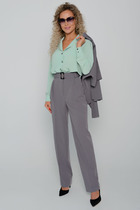 Стильный образ подчеркнет привлекательность, комплект в котором с легкостью обратите на себя внимание. Блуза свободного силуэта, выполнена из принтованной ткани с красивым цветовым акцентом. Воротник отложной. Эстетично подчеркнут V-образный вырез горловины, оформлен имитацией застежки пуговиц, что служит декоративным элементом изделия, встречная складка, одновременно создаст повышенный комфорт. Рукав втачной, свободный, расширенный к низу, создает современный стиль образу и удобство. В боковых швах предусмотрены разрезы.Брюки классические с заутюженными стрелками, слегка зауженные к низу, оформлены притачным поясом, частично на резинке. Застежка спереди брюк на молнию и петлю-пуговицу.